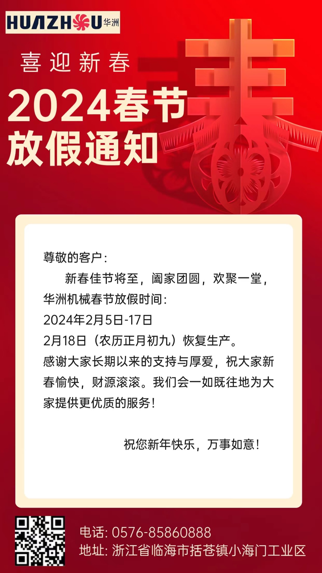 【概要描述】新春佳節(jié)將至,闔家團(tuán)圓,歡聚一堂華洲機(jī)械春節(jié)放假時(shí)間