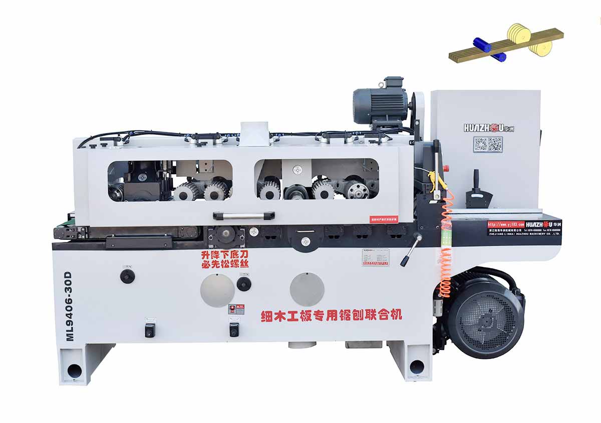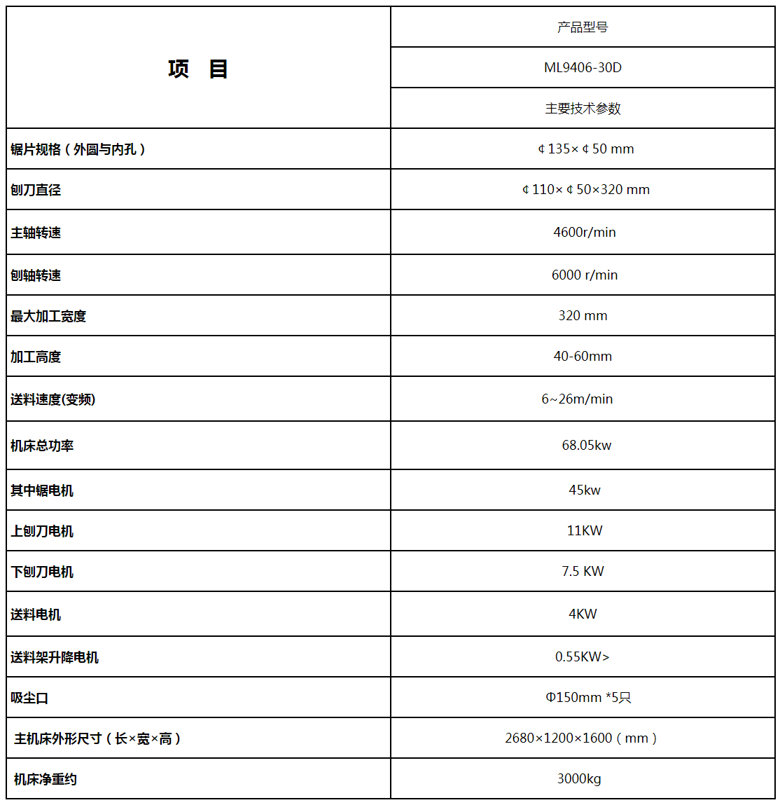 1. 本機(jī)械將上下多片鋸與雙面刨合二為一,根據(jù)預(yù)調(diào)尺寸一次進(jìn)給就能鋸解出多根木條同時進(jìn)行雙面刨光, 降低了木料損耗率,提高了效率。
