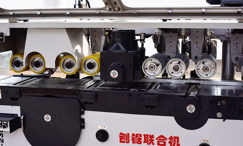4. 送料輪式送料,比履帶送料經(jīng)濟(jì)安全、好控制保養(yǎng),壓料使用氣壓式,所以即使木料厚度變化大,壓料壓力亦固定,壓料之厚度范圍大,最大可達(dá)35 mm。